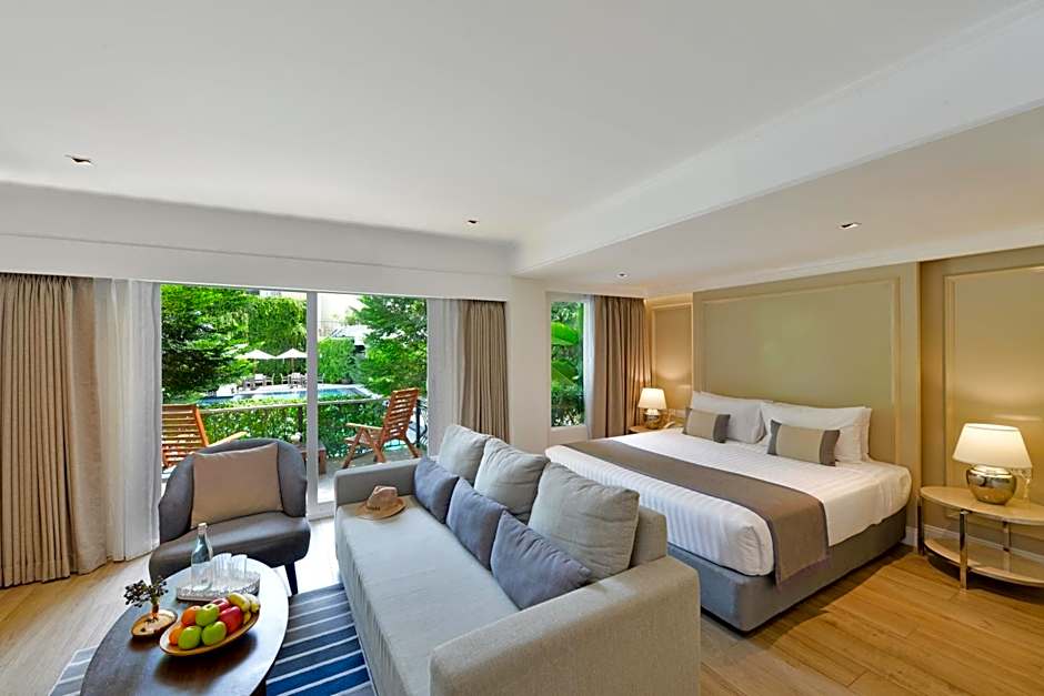 The air-conditioned suite features 1 bedroom and 1 bathroom with a bath and a shower. The suite provides a mini-bar, a tea and coffee maker, a seating area, a flat-screen TV with cable channels, as well as pool views. The unit offers 1 bed.